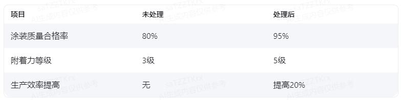 某鋼鐵企業(ye) 在生產(chan) 過程中,由於(yu) 鋼板表麵存在氧化皮和油脂等雜質,影響了塗裝質量和附著力。采用等離子清洗機對鋼板表麵進行處理後,有效清除了氧化皮和油脂,提高了塗裝質量和附著力,同時也提高了生產(chan) 效率。具體(ti) 數據如下: