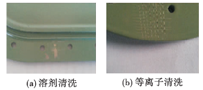 從(cong) 圖中可以看出,等離子清洗機清洗後塗漆的附著力為(wei) 0級,普通溶劑清洗後塗層脫落嚴(yan) 重。采用等離子清洗後再塗漆的附著力優(you) 於(yu) 普通溶劑清洗。