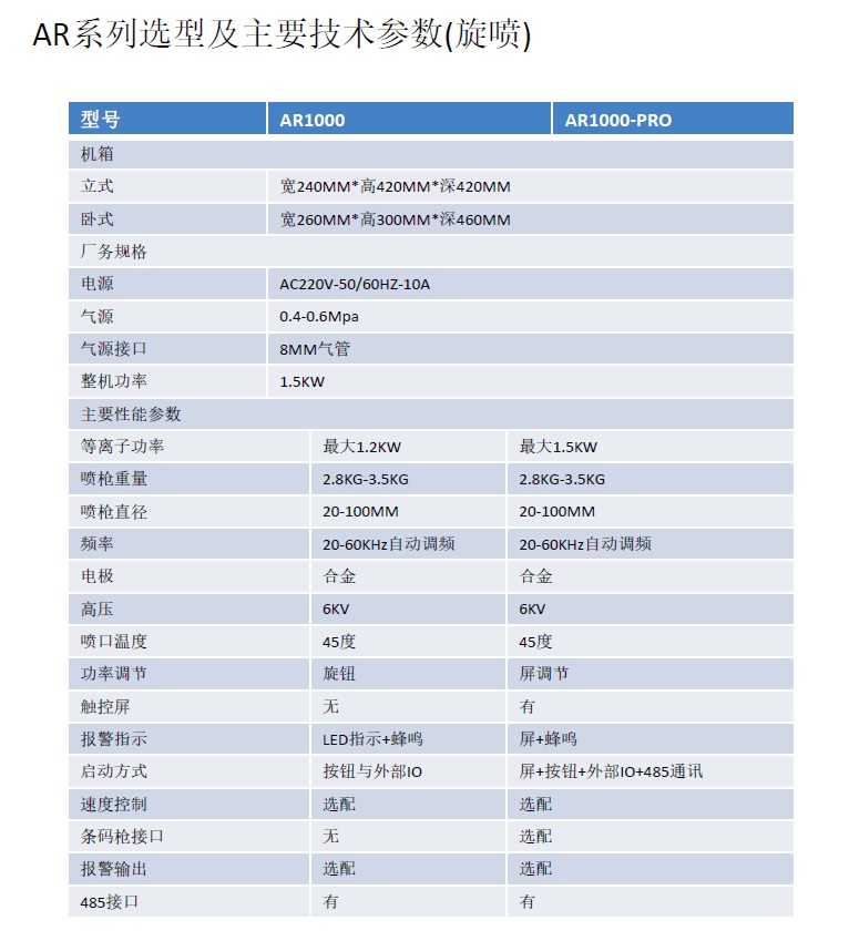 | 等離子輸出功率 | 500-1KW可調 | 500-1.2KW可調 | 500-1.2KW可調 | 500-1.2KW可調 |