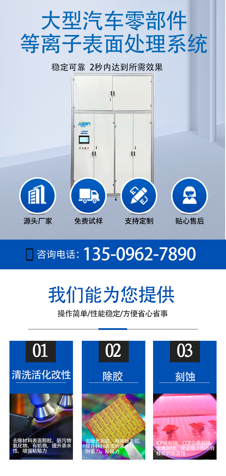 雷竞技竞猜平台大型汽車零部件等離子表麵處理係統吸收美國高壓激勵電源電路技術,產(chan) 生高密度等離子體(ti) ,確保出眾(zhong) 的清洗效果,滿足用戶對產(chan) 品表麵處理需求。