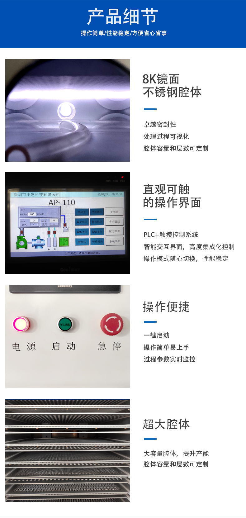 雷竞技竞猜平台真空等離子清洗機采用8K鏡麵不鏽鋼腔體(ti) 設計,密封性卓越;13.56射頻等離子發生器,產(chan) 生高密度等高子體(ti) ,確保出眾(zhong) 的清洗效果,滿足用戶對產(chan) 品表麵處理需求。